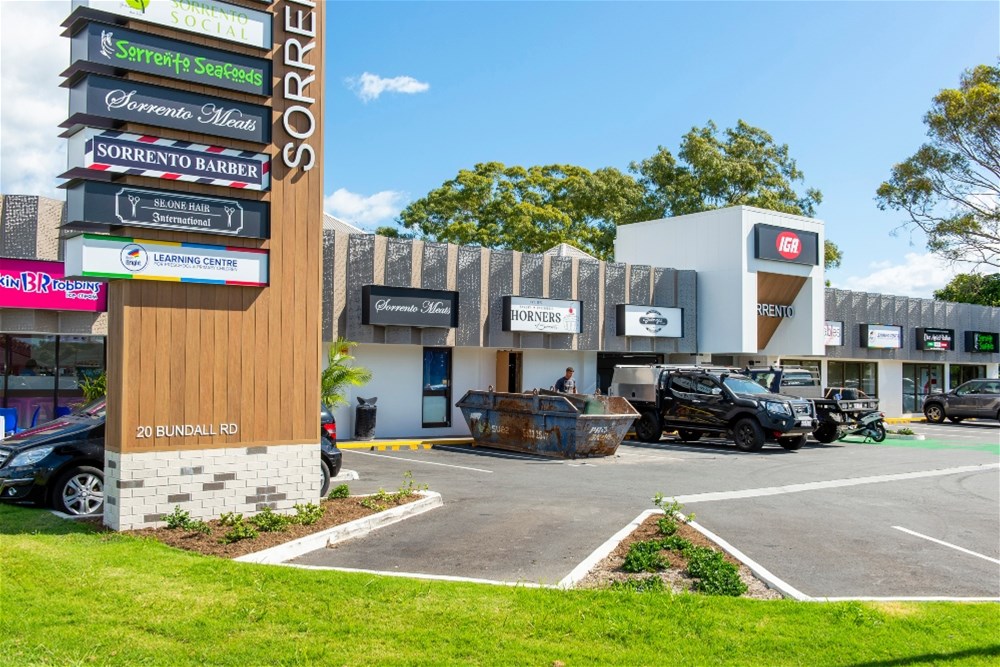 Sorrento Shopping Village is located in a high profile location along Bundall Road and benefits from circa 55,000 passing cars daily. The centre has great signage opportunities and huge street frontage along Bundall Rd, Allawah St and Boomerang Crescent.